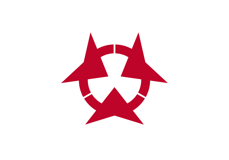 The flag of Ōita Prefecture is a white background with the prefectural emblem in the middle.