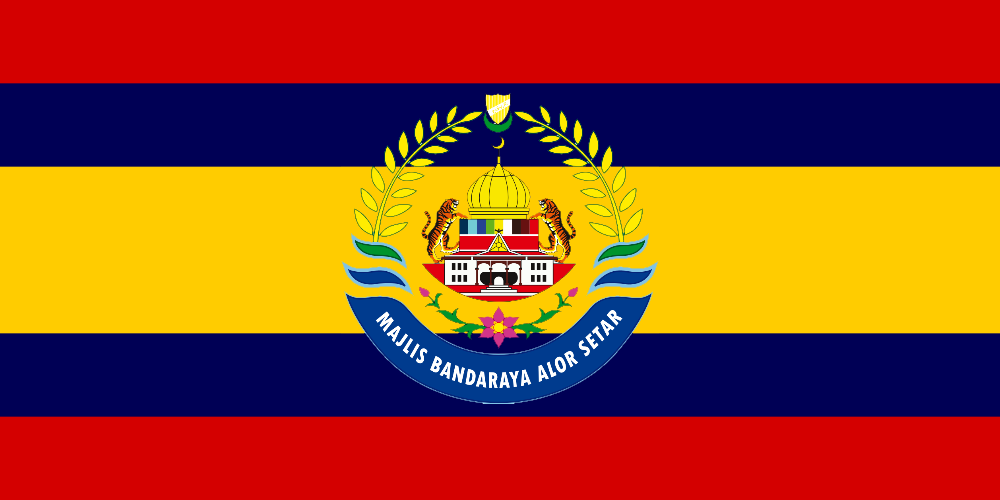 The flag of Alor Setar is the official flag of Alor Setar. It is a flag similar to the flag of Thailand, but the colours are red, navy blue, yellow, navy blue and red. In the center is the city's coat of arms. The flag is not commonly sighted on the city of Alor Setar.