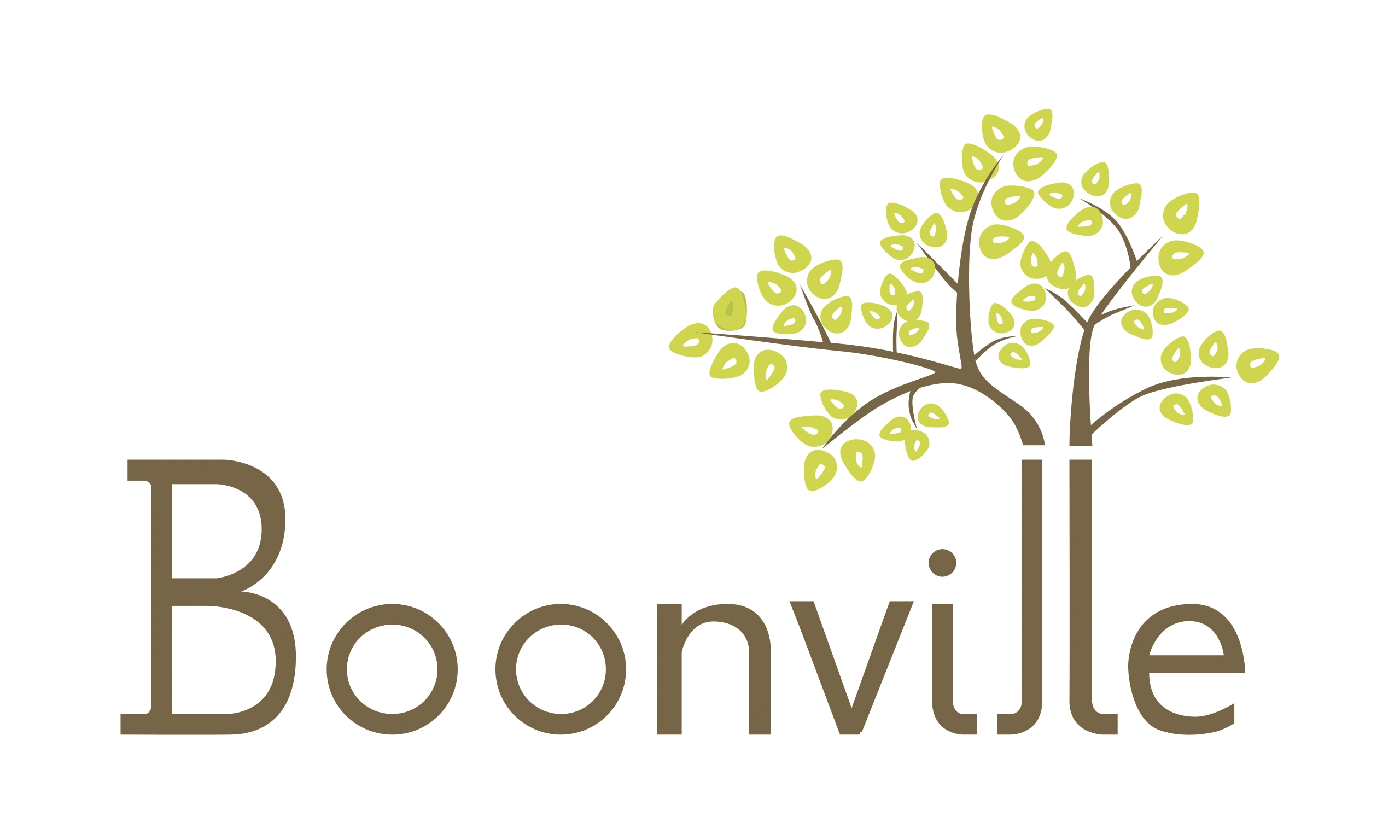 The flag of Boonville, Missouri, is the city's logo in the center. The city's logo consists of a brown text saying ‘Boonville’ while trees with lime green leaves come out of the two letter Ls.