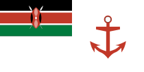 The naval ensign of Kenya is white with the Kenyan flag in the canton and a red anchor on the fly.