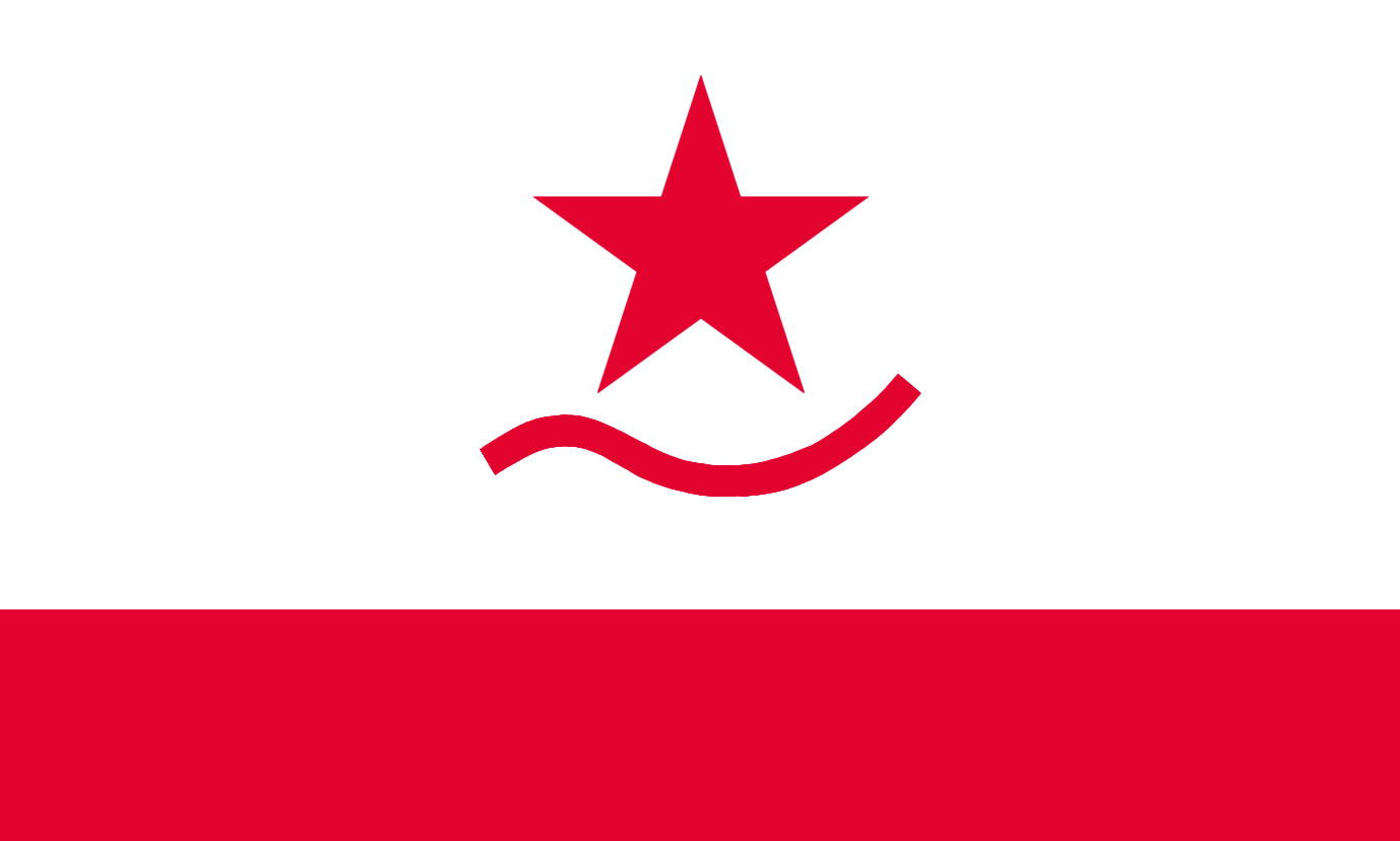 The flag of Sweetwater, Texas, is a white background with a red bar on the bottom. On the top of the bar, is a red five-pointed star and a wavy line.